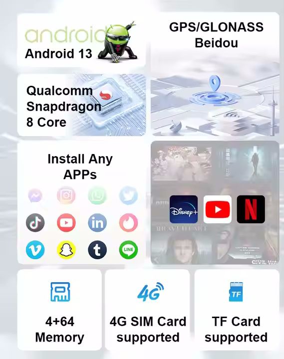 - Android 13 system, support GMS service framework, provide Google Play store, download and install software freely.