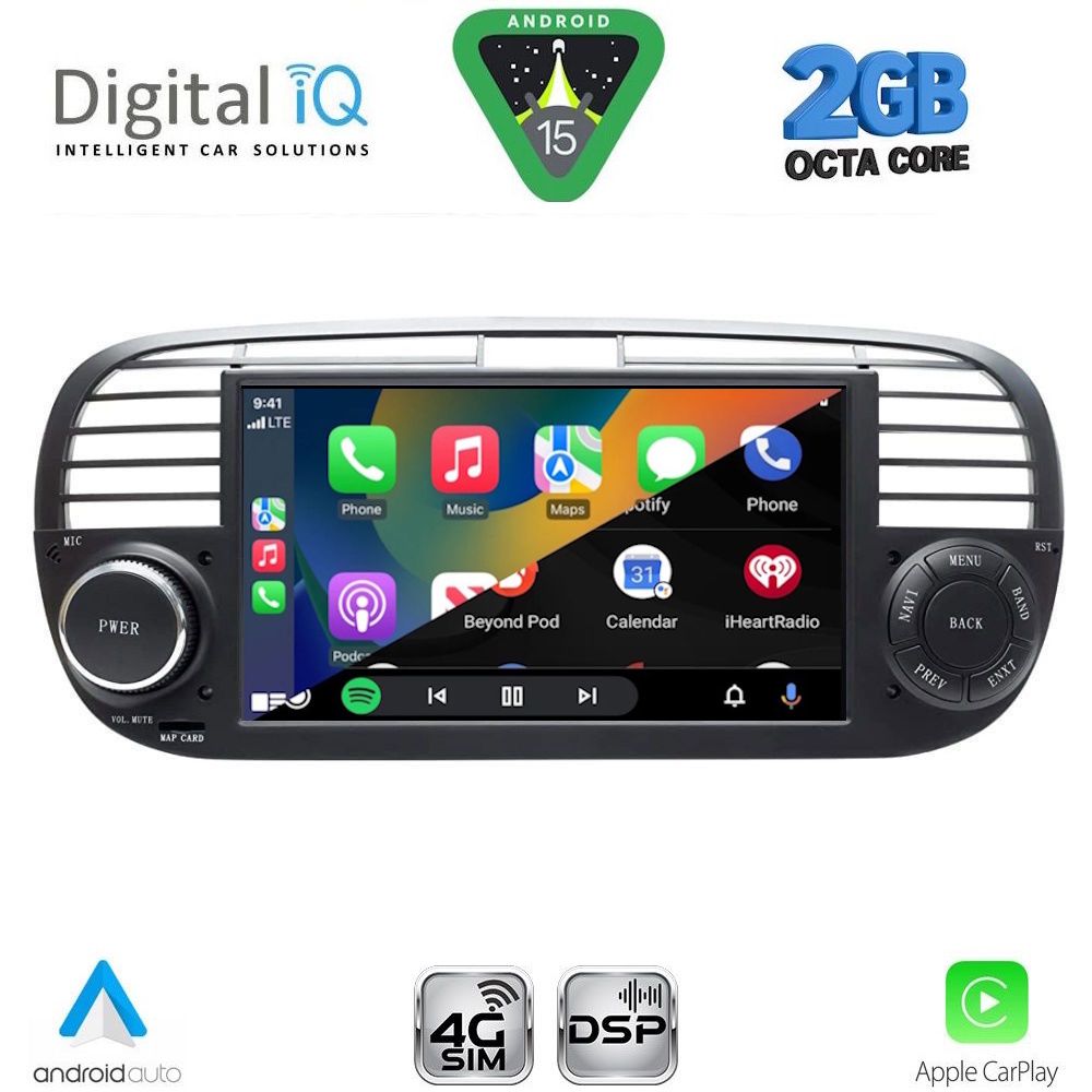DIGITAL IQ BLF 365BL_CPA (7″ DECK) MULTIMEDIA SYSTEM for FIAT 500 mod. 2007-2015 (BLACK)