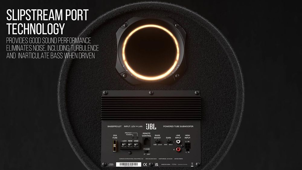 The Slipstream port is mathematically engineered to keep airflow with the port turbulence-free, which avoiding the common shortcoming of traditional ported boxes. Coupled with the built-in 150Wrms amplifier the BassPro Tube Subwoofer really delivers.