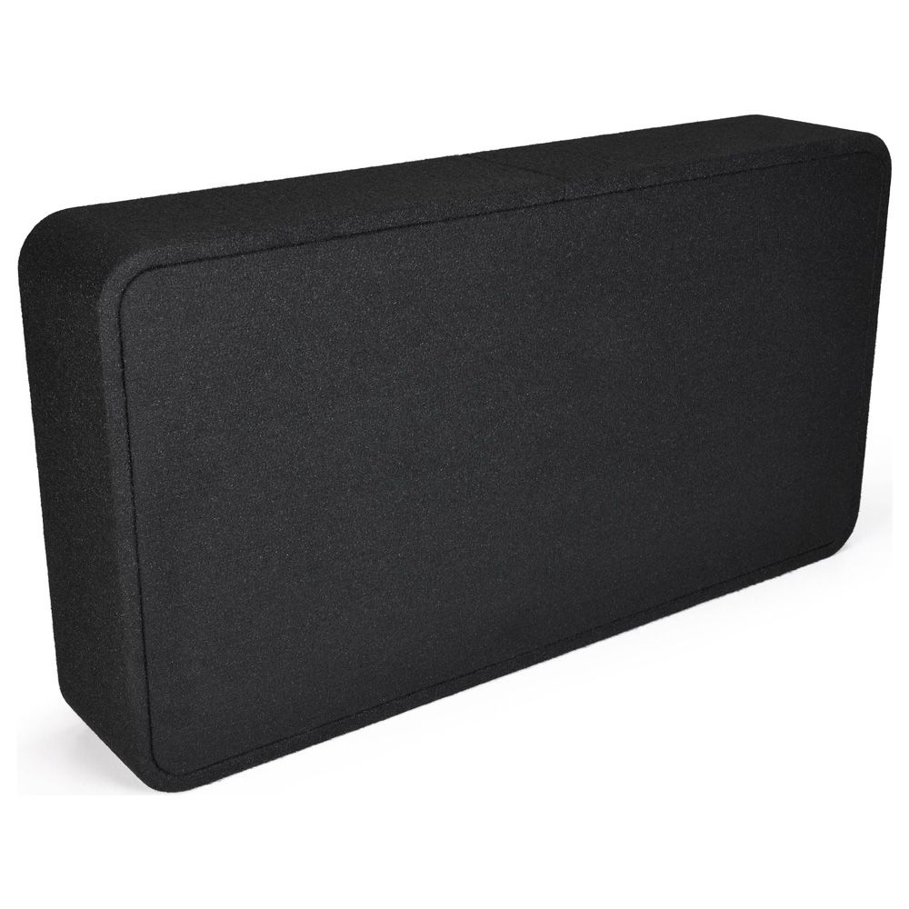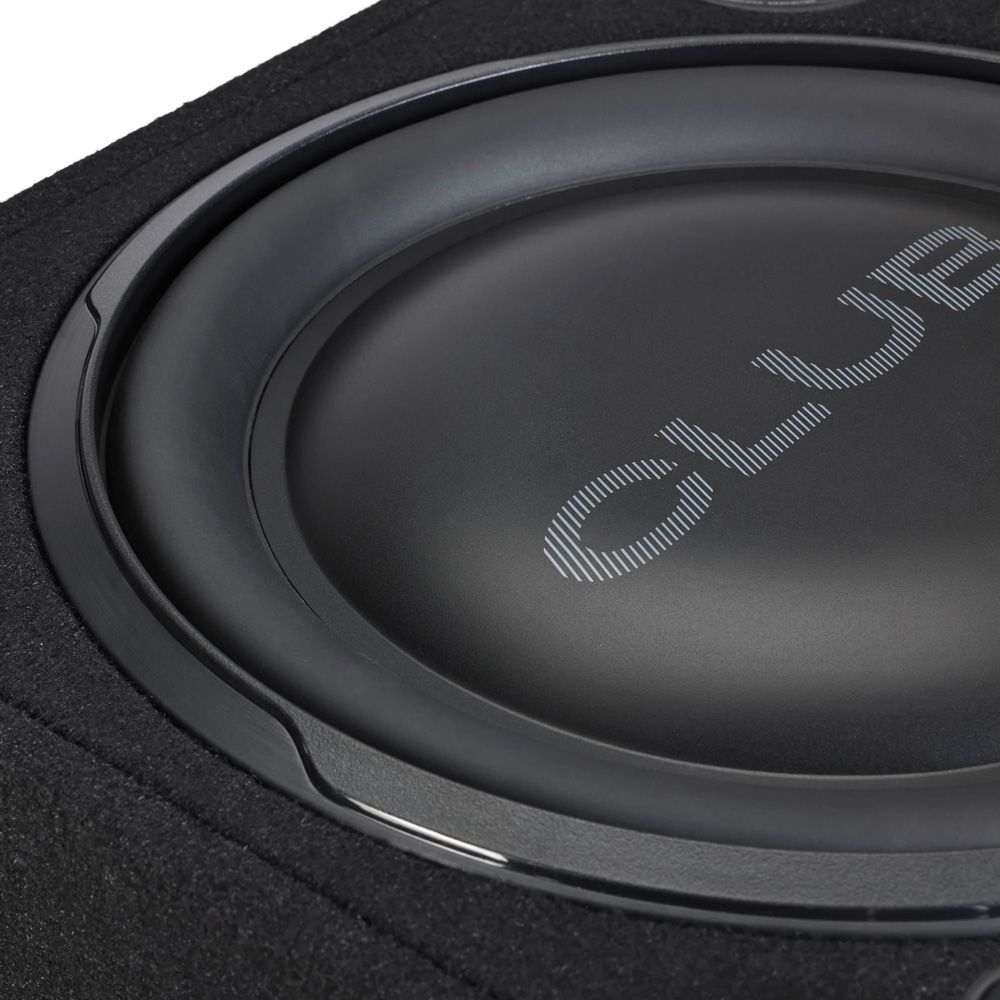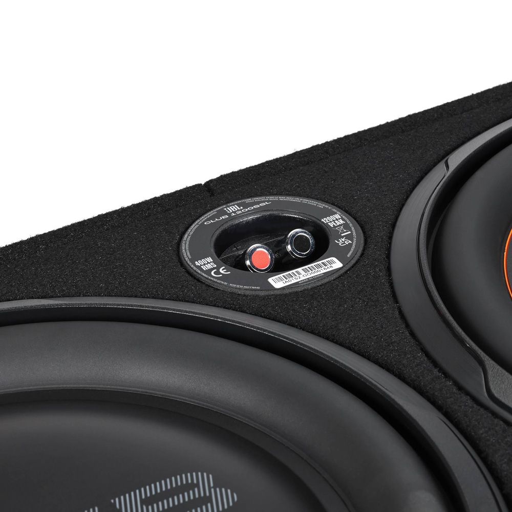 The JBL Club 1200SSL loaded enclosure puts a low-profile 12" subwoofer and a 12" passive driver in a downward-firing box designed specifically for the subwoofer. The second sub (called a "passive radiator") reacts to the air pressure produced by the active sub, reinforcing the low end for bigger thump than other compact subwoofer enclosures.